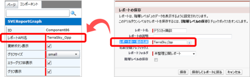 AppComponent配置後に、画面右側のコンポーネントプロパティより表示したいレポートAPI名や、サイズ等を設定します。