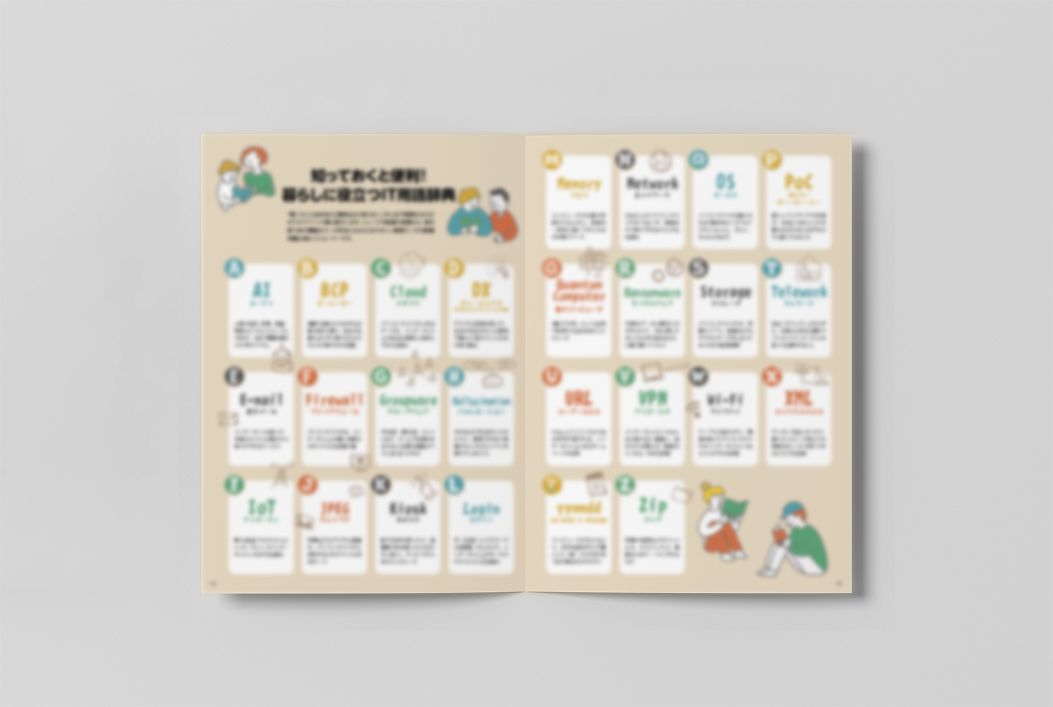 「AI」や「DX」、「クラウド」など、ニュースでよく聞く言葉から「ログイン」「URL」といった毎日使う機能まで、小学生にも分かるやさしい言葉で解説しており、ITの基礎知識が楽しく身につく内容になっています。