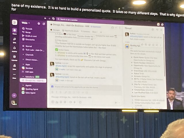 ここで紹介された内容では、AgentforceとSales Cloudに加えて、Slackも力強いパートナーとなってくれます。