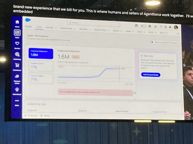 Keynote全体を通して、Dreamforce 2025の主役ともいうべきサービスであるAgentforceとの統合によって、どのようにSales Cloudが営業を進化・・・いや、革新していくのかについて熱く語られました。