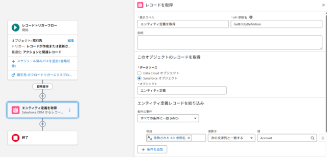 EntityDefinitionId 次の文字列と一致する {!GetEntityDefinition.DurableId}