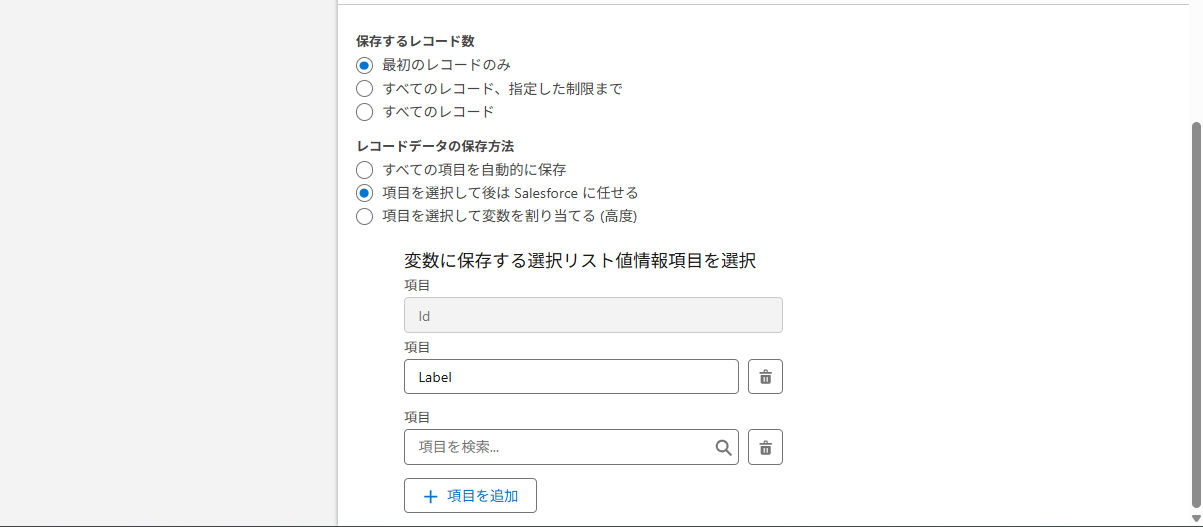 レコードデータの保存方法 : 項目を選択して変数を割り当てる(高度)