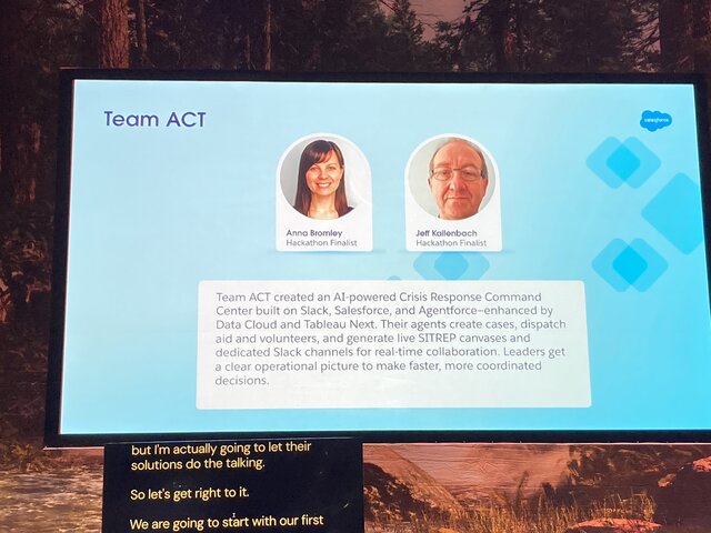 また、Slack CanvasにTableauダッシュボードが埋め込まれており、被害状況や在庫、ボランティアの配置などがリアルタイムで可視化されていました 。審査員からも「複数のAgentforceが連携するアイデアが素晴らしい」「Tableauの組み込み方が見事だ」と絶賛の声が上がっていました!