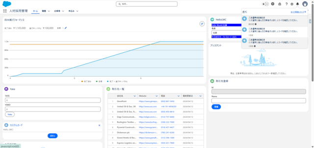 すると、カスタム通知の自動起動フローが動作し、二次選考の担当者である山田 太郎さんにカスタム通知が送信されました。この通知をクリックすることでレコード画面に遷移することも可能です。