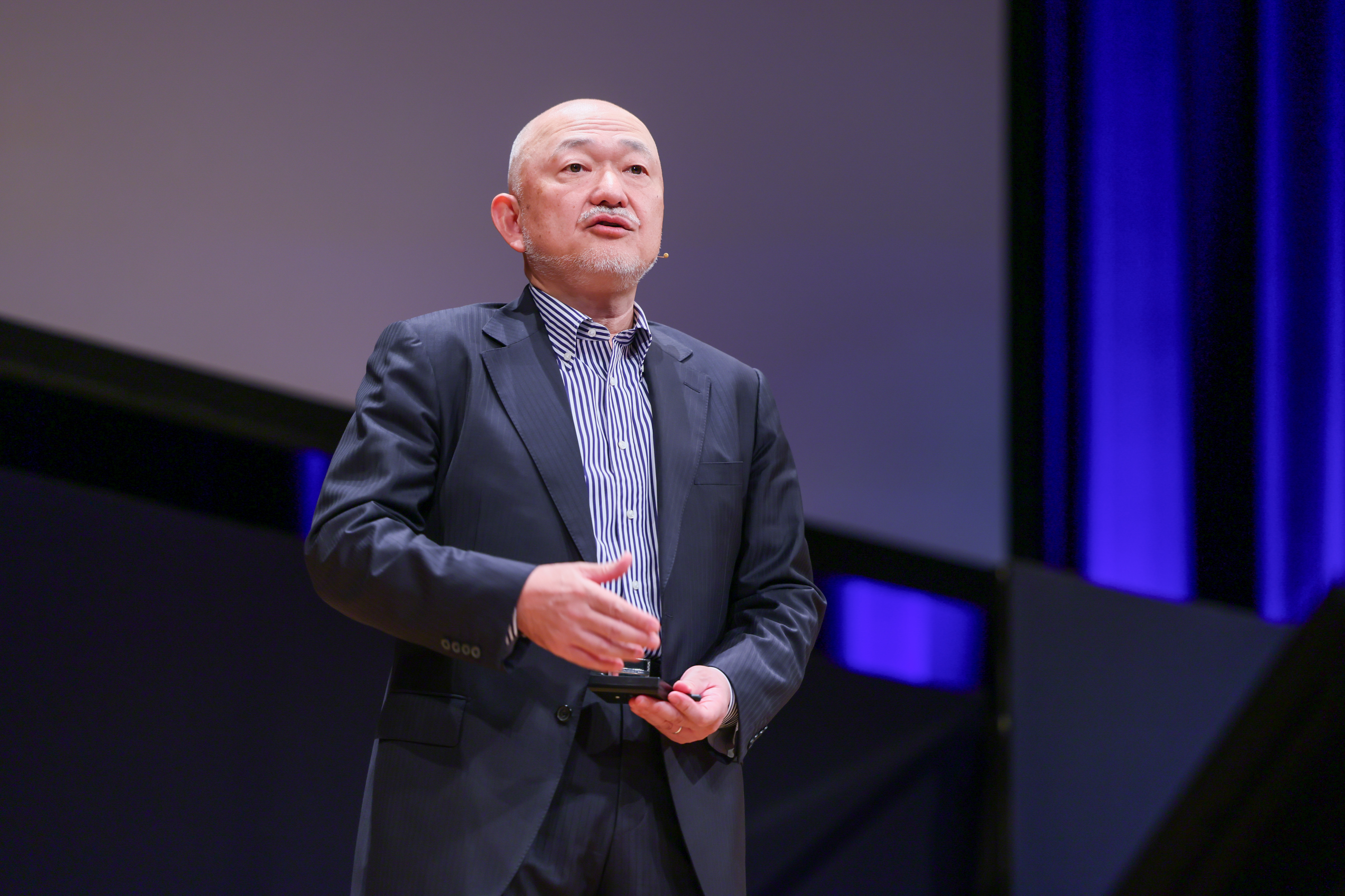 過去に入居していたオフィスビルや、グループが成長した軌跡がスクリーンに映し出されると、会場内は感慨深い空気に包まれました。