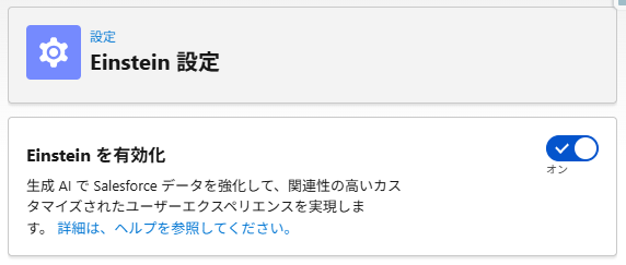 設定>Einstein設定から Einsteinを有効化をオンにする必要があります。