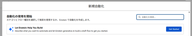 新規フローを開き、フロータイプ上部にある「Let Einstein Help You Build」から「Get Started」を押下します。
