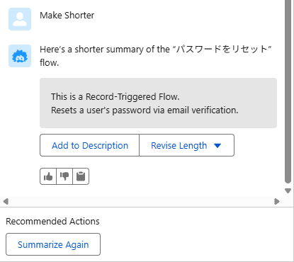 今回は、既存の「パスワードをリセット」フローを要約してもらいます。