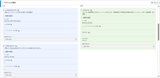 チャットで取得するカレンダー登録に必要な項目を格納する入力変数を作成しておきます。