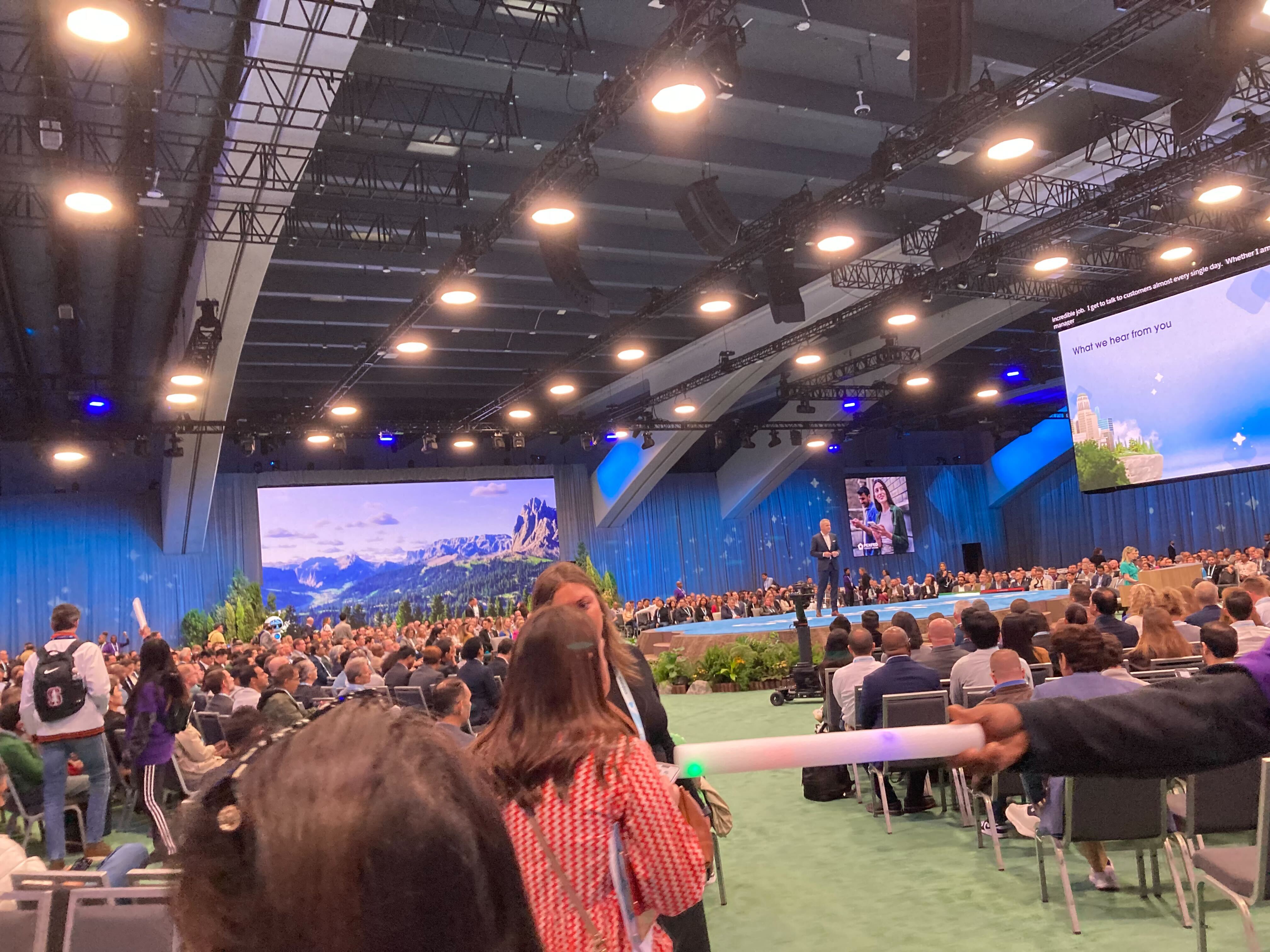 この日も会場は大盛況で、一つ前の「Agentforce Keynote」終了から入替時間が20分あったにもかかわらず、すべての観客が着席する前に開始時間となりました。