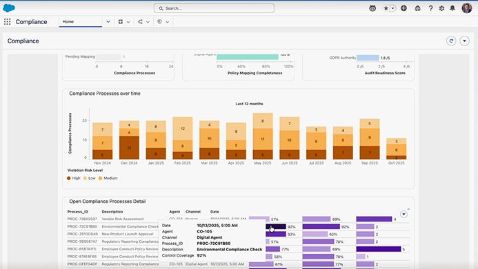 リアルタイムのコンプライアンスレポートにより、数週間ではなく数分で監査の準備が可能となる。