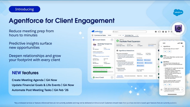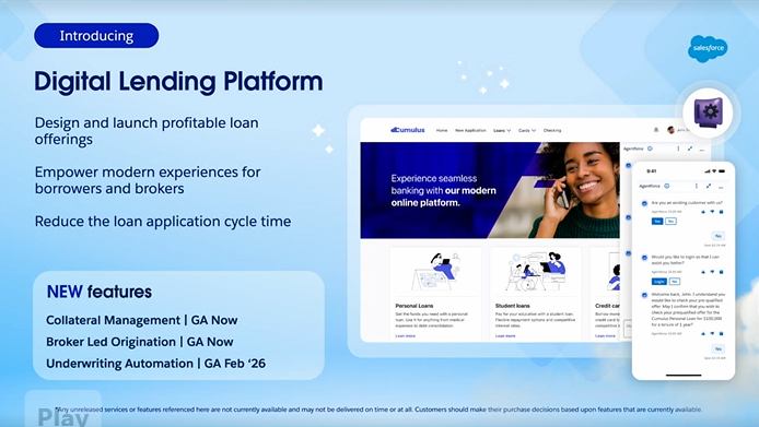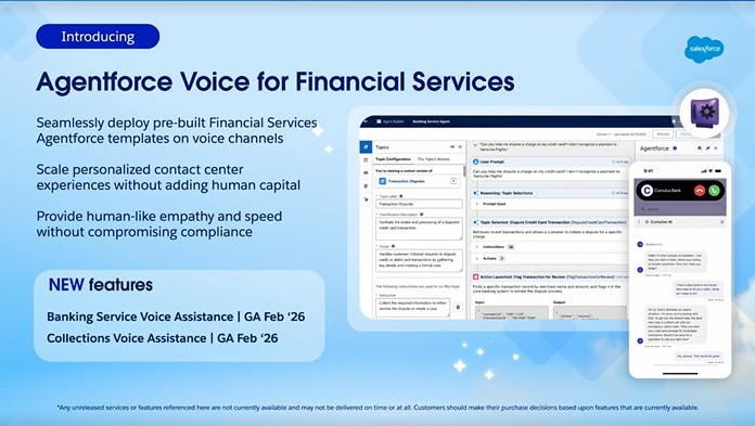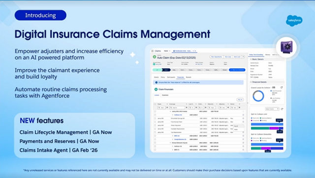 続いてDigital Lending Platform、Insurance Claims Management、Agentforce for client Engagement、に関わる新発表と、Agentforce Voice for Financial Servicesの新発表が有りました。