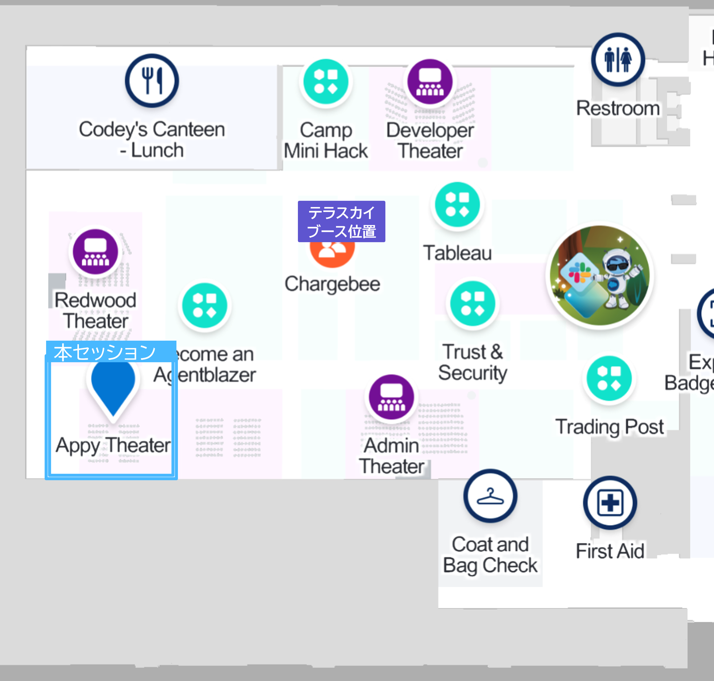 Moscone Westには弊社テラスカイのブースも出展しており、各社のブースの周りを囲むようにハンズオンやセッション用のスペースが配置されています。