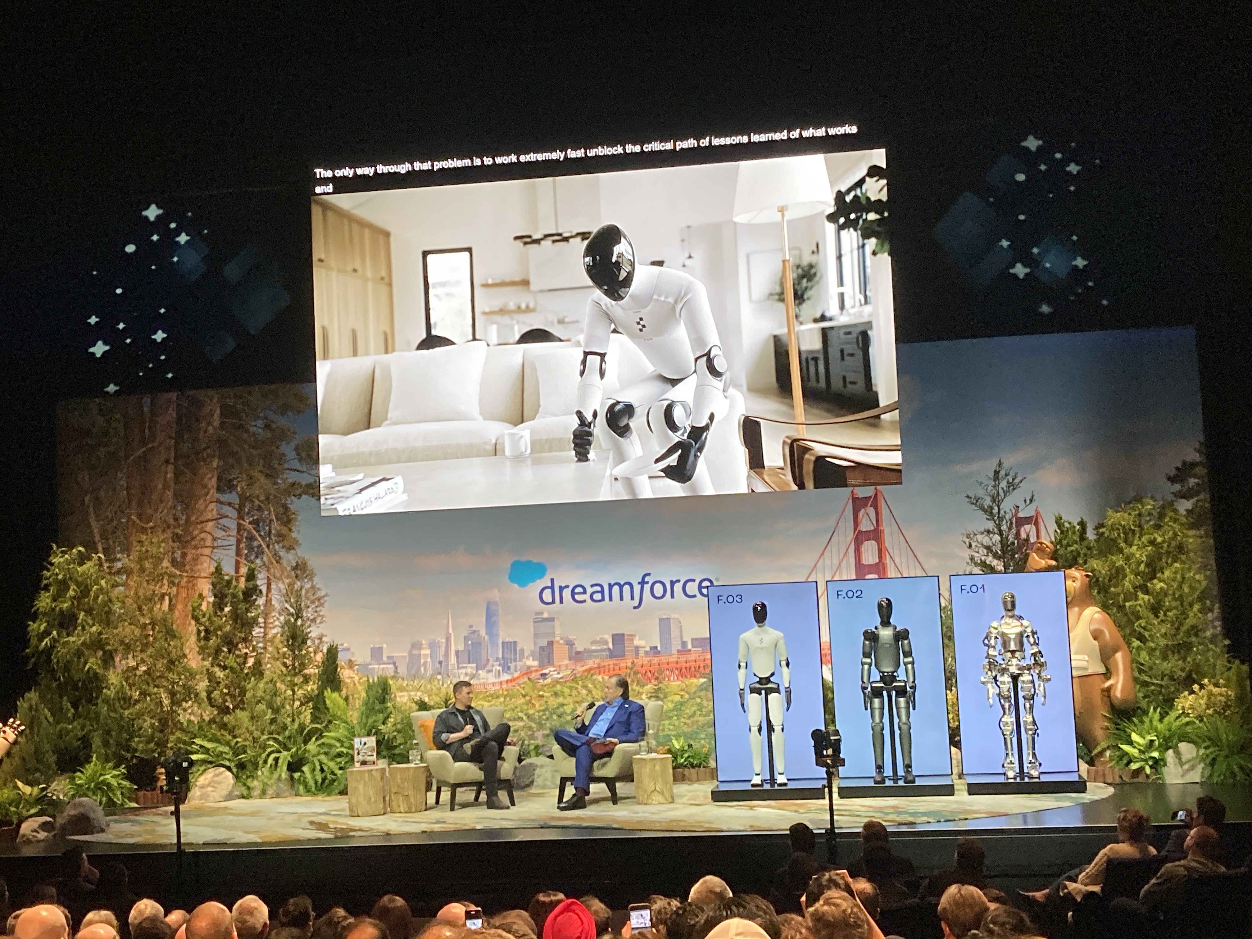Salesforce社のマーク・ベニオフCEOが、アメリカのヒューマノイドロボットのスタートアップであるFigure社のブレット・アドコックCEOとAIを積んだヒューマノイドロボットが労働力や産業を変革する可能性について議論をしておりました。さっそく内容を簡単にご紹介いたします!