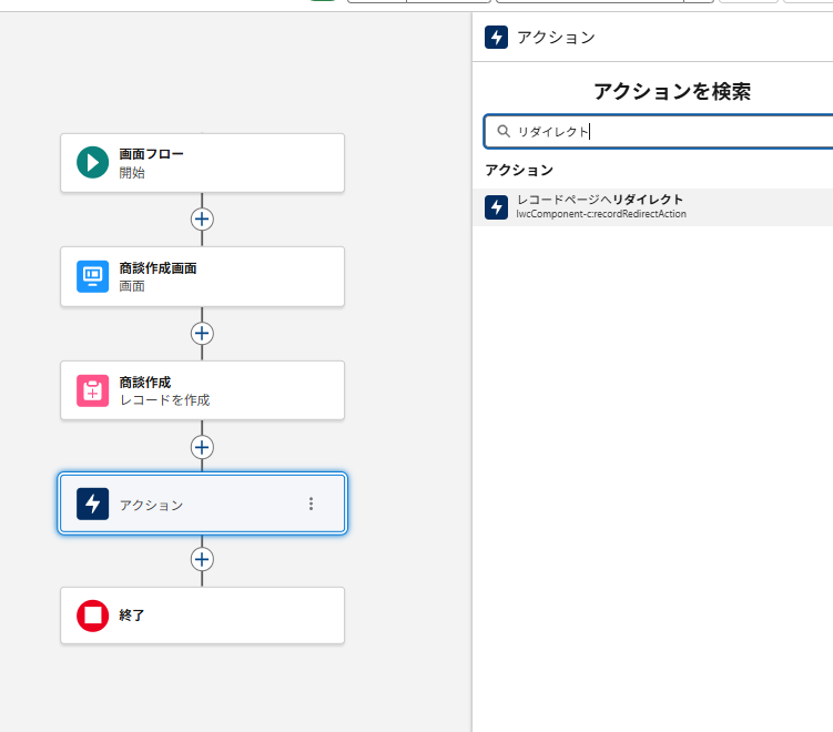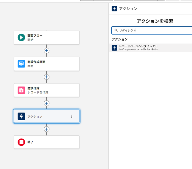 作成したコンポーネントをFlow Builderで使用する際は、「アクション」要素として追加します。