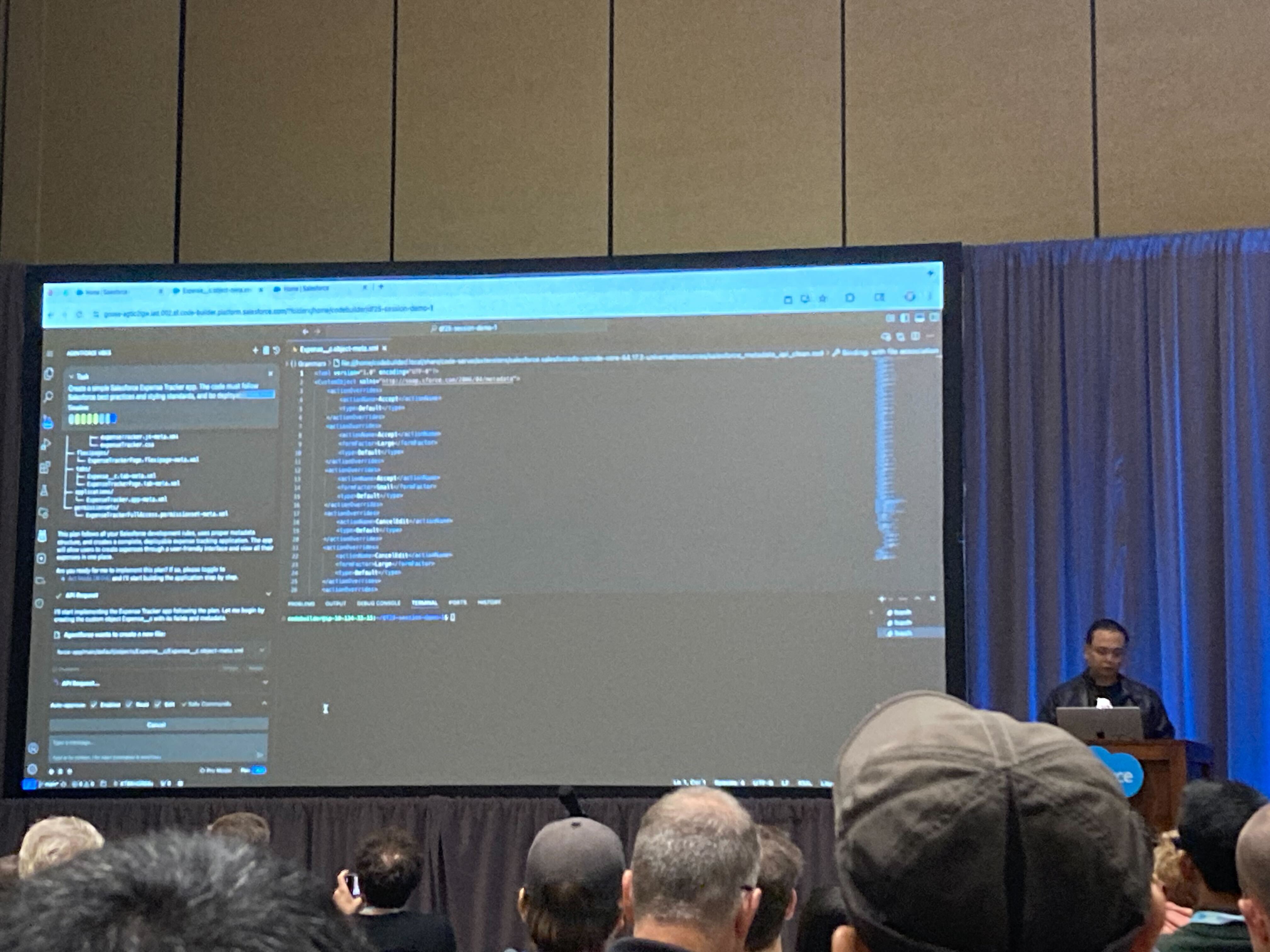 「Write Less. Build More. Vibe with Agentforce Vibes」のセッションではデモを通して説明がありました。